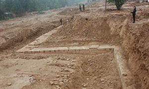 在清理過程中,考古工作隊探明甕城一處,但缺損不全。據(jù)考古人員現(xiàn)場分析,東甕城門向南開,向東外延數(shù)據(jù)不詳,城門到吊橋距離87米,吊橋為重修的水泥橋?!?br/>
