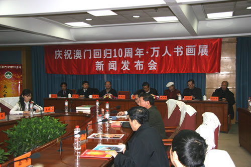 30日下午,“慶祝澳門回歸10周年•萬人書畫展新聞發(fā)布會”在文化部召開,由此正式拉開“中華民族大團結(jié)萬歲•萬人書畫展——慶祝澳門回歸10周年”序幕。