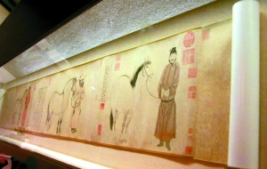 大都會博物館書畫館展出的疑似圓明園文物———趙孟頫《三世人馬圖》,蓋有“乾隆御鑒之寶”、“石渠寶笈”“嘉慶御鑒”等印章,是否曾為圓明園所藏,有待考查