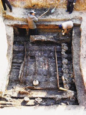 據邯鄲市文物保管所有關負責人介紹,截至1月18日,墓葬發(fā)掘工作已基本結束。專家通過對墓葬形制、出土文物進行分析,認為這是戰(zhàn)國時期的一座貴族墓,墓主人當時應擁有很高的社會地位。根據先秦時代的喪葬禮制,除了墓室大小之別外,墓道數目也體現著地位的高低,天子墓一般是4墓道“亞”字型,諸侯一級的是2墓道“中”字型,其次為1墓道“甲”字型,再下僅是豎穴一個。