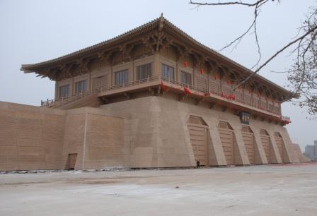 丹鳳門遺址保護(hù)展示工程由中國(guó)工程院院士張錦秋設(shè)計(jì),是唐大明宮國(guó)家遺址公園建設(shè)中的重要組成部分。工程占地面積7699平方米、總建筑面積 11474平方米,自去年3月29日開工以來投入文物保護(hù)資金1.3億元。該工程為三層框架結(jié)構(gòu),內(nèi)部空間用于保護(hù)展示丹鳳門遺址,分為保護(hù)展示城臺(tái)內(nèi)和西城墻的“遺址本體保護(hù)展示區(qū)”、東側(cè)城墻模擬體內(nèi)的交通面積和觀眾服務(wù)設(shè)施及管理用房等“保護(hù)展示輔助功能區(qū)”、城樓上的“多功能活動(dòng)區(qū)”和統(tǒng)一規(guī)劃的 “設(shè)備用房”四大功能區(qū)。