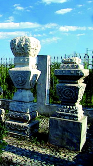 崔先生是北京市文物保護協(xié)會會員,他介紹,石五供是祭祀用具,包括香爐、寶瓶、蠟扦(即燭臺)等?,F(xiàn)場可見,香爐西側(cè)漢白玉基座上1米多高的一個寶瓶和一個蠟扦不知去向。