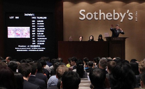 在蘇富比拍賣場上的拍品可謂珍奇薈萃,堪稱完美,幾乎每件拍品都會掀起一股激烈的競標(biāo)大戰(zhàn)。直至拍賣結(jié)束,總成交額達4.27億港元,超出其1.3億港元估價上限的3倍。電話買家的風(fēng)頭勝過場上買家,坐在場上的還有看上去悶悶不樂的烏里·??耍║li Sigg,他的中國當(dāng)代藝術(shù)收藏與尤倫斯的收藏有得一拼)。在拍賣會后,??藢β吠干绶Q他也曾舉牌出價,“但那些價都抬得太高了”。