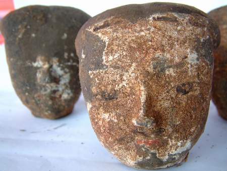 此次發(fā)掘中,在333號戰(zhàn)國晚期墓和其他墓,首次出土11件彩繪陶俑頭和4件陶馬頭,其中彩繪陶俑分男俑和女俑,男俑輪廓清晰,面目俊秀。女俑臉形微胖,表情豐富目光傳神,后腦挽有發(fā)髻。陶馬栩栩如生,有紅彩鑲邊。市文物管理局負(fù)責(zé)人講,此次應(yīng)國墓地彩繪陶俑頭和陶馬頭的出土,表明戰(zhàn)國晚期陶器的制作工藝已具有較高的水平,它的出土對研究戰(zhàn)國晚期歷史、文化、民俗都具有重要價值。