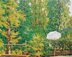 我熱衷于現(xiàn)實(shí)的風(fēng)景寫生,以“擁抱”大自然為樂。在景觀的尋覓中,時(shí)因發(fā)現(xiàn)美的景點(diǎn)而激動(dòng),如不能及時(shí)去畫,總有難以釋懷之感。我總要求自己成為全天候的畫家。無論陰晴、朝暮、雨雪,都視為藝術(shù)表現(xiàn)自然美的機(jī)遇,不能輕易錯(cuò)過。在現(xiàn)場(chǎng)選好最佳角度,是坐著畫,還是站著畫,完全從表現(xiàn)意境需要為出發(fā)點(diǎn)。在可坐可站的情況下,寧肯選擇站立作畫。因?yàn)檎局?,揮寫、進(jìn)退自如,便于施展“拳腳”,抒發(fā)情感,有利于掌握色彩對(duì)比的遠(yuǎn)觀效果。