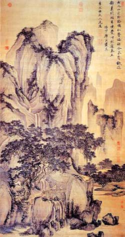 仔細瀏覽復制品,記者不得不感嘆科技的先進。一幅宋范寬的溪山行旅圖,連原畫因為時代久遠留下的褶皺都“照抄”。這幅絹本得到美學家的肯定,楊辛教授頻頻表示原作山水的遠近、色彩的運用和大山小人的神韻得到完美再現(xiàn)。觀者中也有人認為這樣做太機械,但更多人認為這是逼真度高的體現(xiàn)。