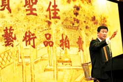 記者走近觀察,發(fā)現(xiàn)這位買家就是去年在中貿圣佳公司秋季拍賣會中,以1980萬天價買走傅抱石《毛澤東詩意八開》冊頁,創(chuàng)造內地近現(xiàn)代書畫拍賣紀錄的人。據(jù)悉,此人為一內地企業(yè)家,雖然步入藏界不久,但起點頗高,只收精品。拍賣前,他曾表示希望將專場中的御筆書法全部收走。中貿公司的總經(jīng)理易蘇浩勸這位買家沒有必要全收,應只買自己沒有的。(記者 王 ?。?稿件來源:北京娛樂信報