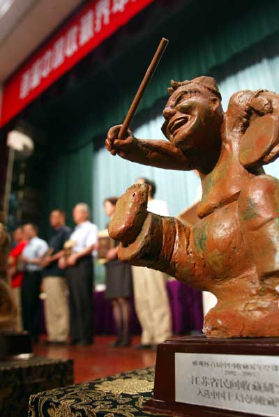 同時(shí),“排行榜捐獻(xiàn)珍寶,搶救中國(guó)民間文化遺產(chǎn)”活動(dòng)舉行,有關(guān)方面表示,通過(guò)市場(chǎng)運(yùn)作,用捐贈(zèng)品募集來(lái)的資金將進(jìn)一步為中國(guó)民間文化遺產(chǎn)搶救提供支持。