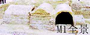 ?。停参挥冢停钡谋眰?cè),墓頂早期已被破壞,分前、后室,呈凸字形,通長7.38米。規(guī)模較M1小得多,但出土的文物數(shù)量在4座墓葬中是最多的,鐵器有劍、戟、盆、燒烤架等,青銅器有帶鉤、燈、洗、缽、勺等,陶器有罐、井、灶等,銀器有指環(huán),還有大量的五銖錢。特別是其中的羊形琥珀質(zhì)地飾件和羊形銅燈,造型精美。